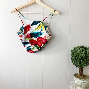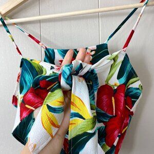 Features: Havana crop top, dry clean only, can adjust sizing, wrapped crop top, halter top, summer, beach, vacation top, tropical floral pattern print