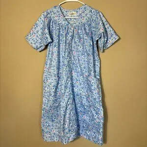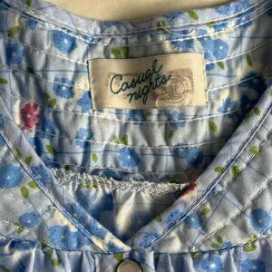 Casual Nights Blue Floral Nightgown Snap Button Front Size Small