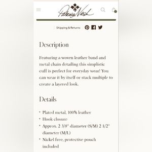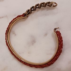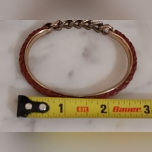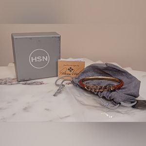 *NEW* Patricia Nash Leonora Tension Chain Cuff Bracelet. Color: Tan. Woven leather band details the metal chain. Knot-like metal detailing.