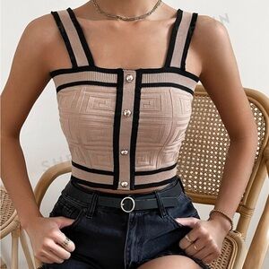 Elevate your style with this sexy Mocha Magic Sleeveless Color Block Cardigan! This cardigan is perfect for layering and adds a trendy touch to any outfit. With its sleek color block design and decorative buttons down the front with a fitted and flattering design, you'll be turning heads wherever you go! This top is in Excellent Like New Condition and shows absolutely no wear. It is shipped immediately from a smoke free and pet free environment.