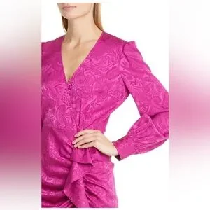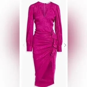 NWT $698 Veronica Beard Weiss Side Ruffle Long Sleeve Silk Blend Maxi Dress