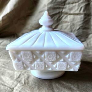 1940-50's Westmoreland 'Old Quilt' lidded compote/honey box milk glass