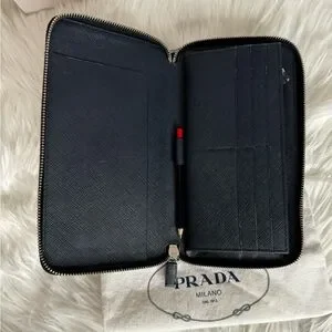 Authentic Prada Saffiano Leather Navy Blue Organizer Wallet