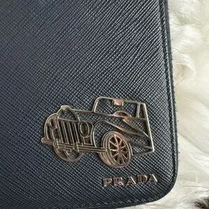 Product : PRADA Navy Blue Saffiano Leather Porter Motif Round Zip Long Wallet