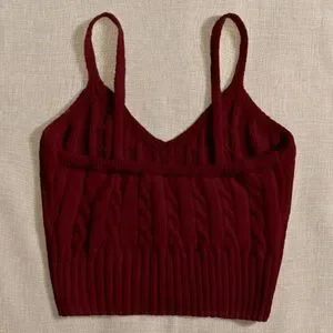 Small (4) NWT Maroon Red colored Cable Knit Cropped Cami Tank top