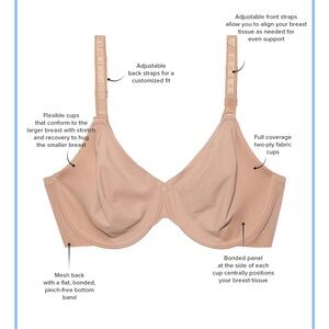 Specially designed for uneven breasts, this underwire bra features adjustable front straps that allow you to align your breast tissue as needed for even support.