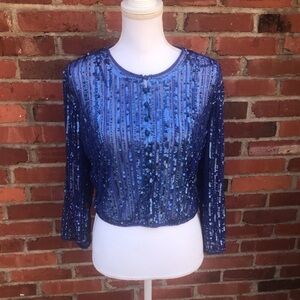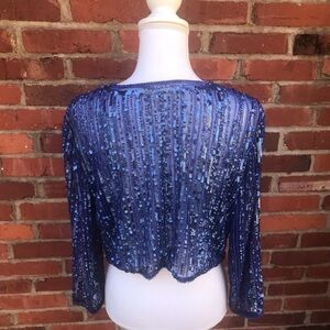 Rosa Clara Couture Long Sleeve Topper Jacket Size 12 Something Blue Sequins