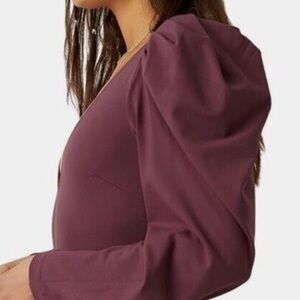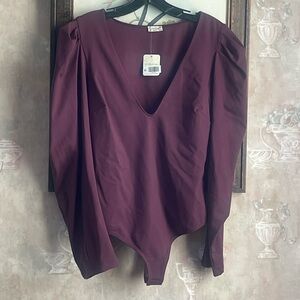 FREE PEOPLE VA VA VOOP PUFF SLEEVE BODY SUIT LARGE WINE