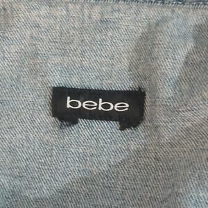 Bebe Jean Jacket XL Denim Embroidered Floral Beaded Raw Hem Distressed Pocket