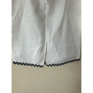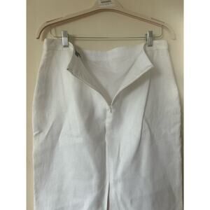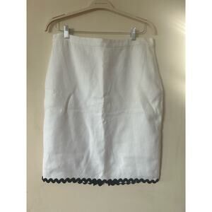 J Crew Pencil Midi Skirt 100% Linen Size 12 White w/ Navy Rickrack Trim Worn 1X