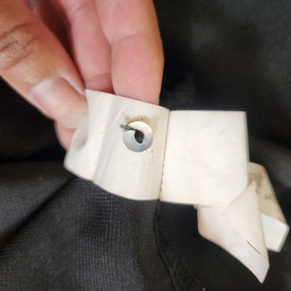 ●Iridescent button closure on the upper back