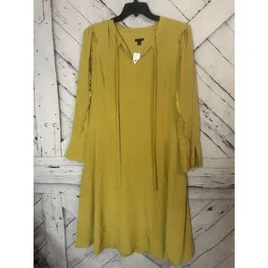 Ann Taylor Beautiful Gold Ruffle Long Sleeve Long Shirtdress SZ 16 *read*