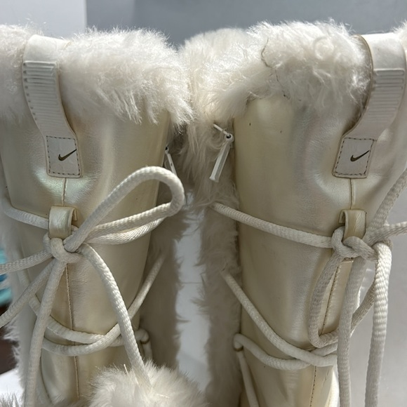 🔥SOLD🔥Nike Womens White/gold Faux Fur Trim Insulated Winter Boot Zip Pom Pom Tie