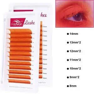 Volume Eyelash Extension 0.07 D Curl 8-14mm Mixed Tray Orange Color Volume