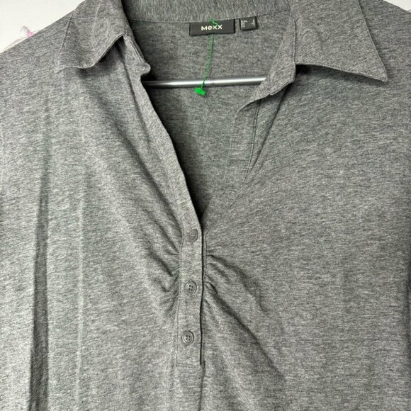MEXX shirt button down top grey stretchy lounge comfy collar collared long