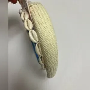 Gorgeous Pink Linen headband decorated with sea shells and ‘ratan’ looking one.