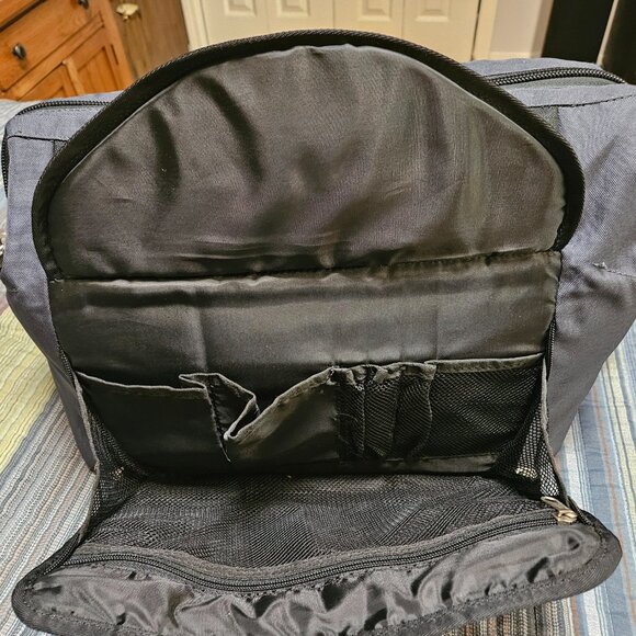 Virtually new Columbia carry on bag that measures 16" x 10" 12".. i used it on one flight ..It has multiple interior and exterior pockets . I have carrying handle plus a shoulder strap