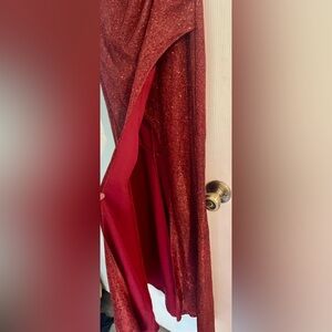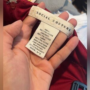 Beautiful strapless red formal long dress. Has a slit on the side and zippers up the back from Social Couture. Only used once and dry cleaned after. Any questions please ask! ♥️ *First picture is NOT exactly like the dress*