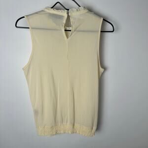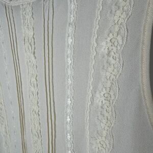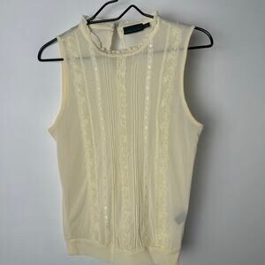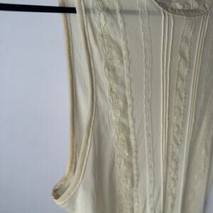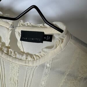 Beautiful, lightweight cream tank top/blouse from The Limited. Cream with lace detail, ruffled neck. Stretchy mesh fabric.