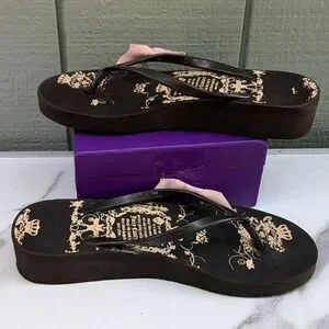 Juicy Couture Y2K "Smells Like Couture" Fairytale Vintage Platform Wedged Flip Flop Sandals. Size 10
