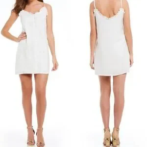 New Gianni Bini- Women's White Kady Button Front Embroidered Dress