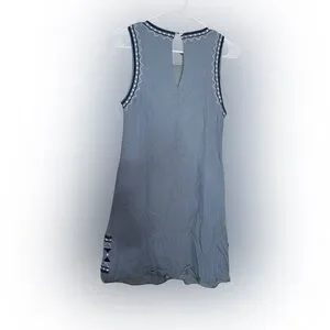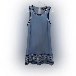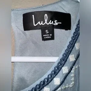 This is such a cute mini dress. Perfect for any occasion. It’s super light and airy and a gorgeous blue color with intricate embroidery.