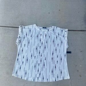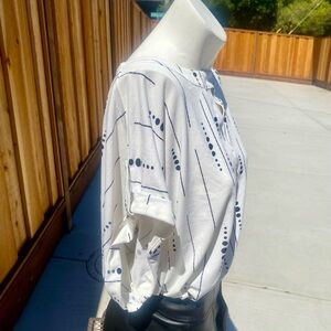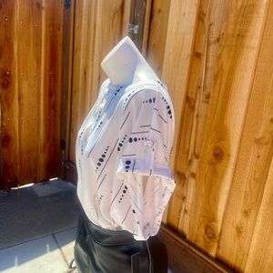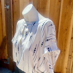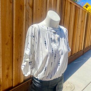 Get ahead of the 2010 trend in this beautiful, lightweight white blouse with a black line and dot pattern throughout ♠️