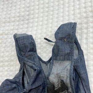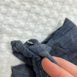 • Cotton, woven chambray, cross-dyed, no stretch.