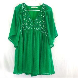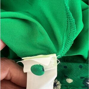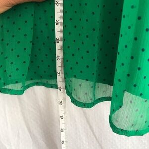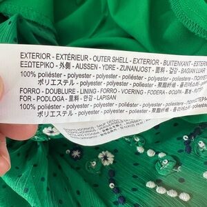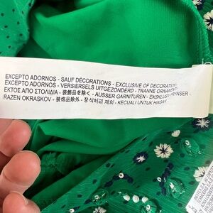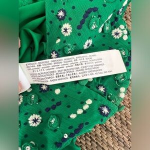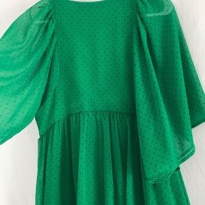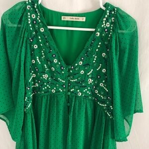 Zara Kelly Green Shorts Jumper- embroidered front, bell sleeves- Button closure, I typically wear a 6 or medium. I’m 5’5. I would say this would fit a size small or 4-6 perfectly.