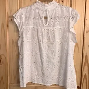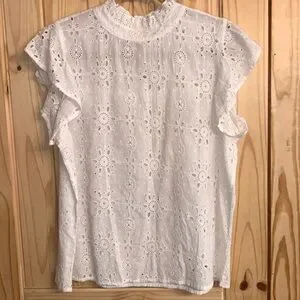 THML White Eyelet Ruffle Top Size Large