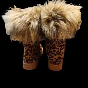 Bamboo Leopard Faux Fur Boots Size 7.5