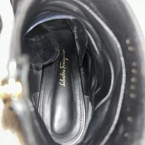 Gorgeous black leather ankle boots in EUC with quilt stitch logo detailing on the toe and covered heals (in excellent condition see pics). Gold logo and zipper with leather Ferragamo pull. Size 8C