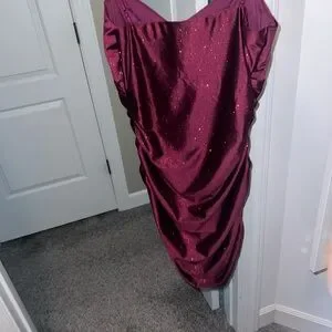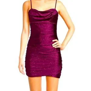 designer dress: esmerald sundae, size large, new with tags never worn, purple/magenta/eggplant color, bodycon dress sparkly