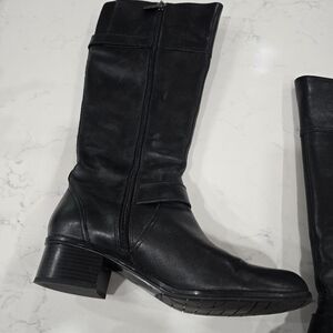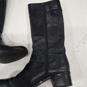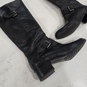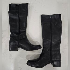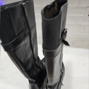 Bandolino Coppa Black Leather Side Zip Knee Harness Riding Boots Women's Size 8M
