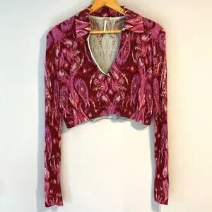 Long sleeve, deep v neck collared Free People sweater. Love it but it's too big for me. Gently preowned in excellent condition. 100% viscose.