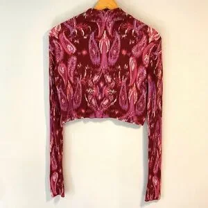Free People Cherie ribbed v neck sweater in wine abstract swirl paisley print