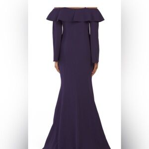 Teri Jon Off The Shoulder Long Gown, Purple - 8 MSRP $980