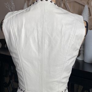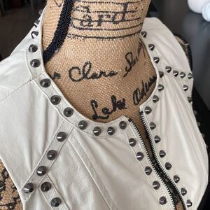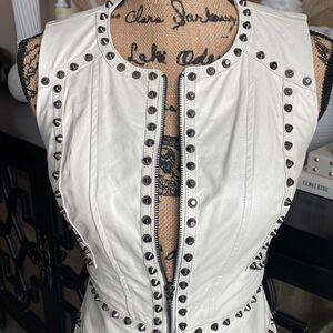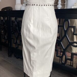 Bebe White Genuine Leather dress with metal studs.great condition -worn once.Exclusive model. Leather in style forever. This dress is one of a kind!