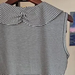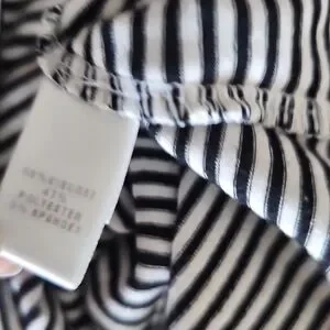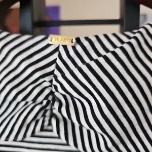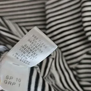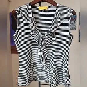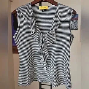 ST JOHN Women's Ruffle V Neck Sleeveless Striped Black White Stretch Top Size M