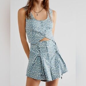 NWOT Free People Bennett Lace Up Tie Dot Shorts Cloud Blue White