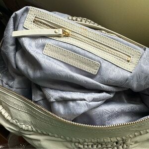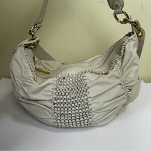 Diane Von Furstenburg DFV Kelli Leather Hobo Woven Bag Tote Off White Gold Slouchy Soft