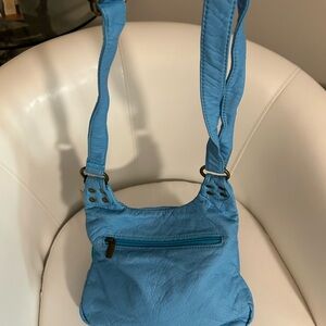 This Ampere creation crossbody is extremely soft with plenty of room inside and out. Can be worn as crossbody or shoulder bag. The color is serenity blue.
