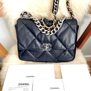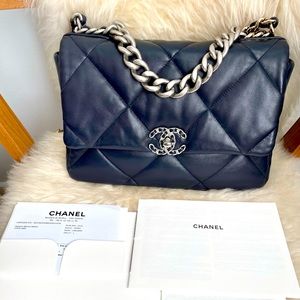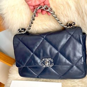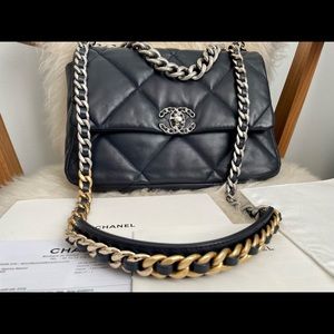 CHANEL large 19 handbag in Lambskin, Gold-Tone, Silver-Tone & Ruthenium-Finish Metal.