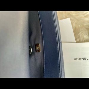 You will not be able to find this color anywhere, as Chanel doesn’t repeat colors. This color was only available in Geneva and I purchased last bag out of two left in entire boutique. I went to Chanel boutiques in Paris, Zurich, Cannes and they had almost no bags for sale, very limited pieces undesirable colors/models. I purchased last navy color in Geneva boutique. *THIS COLOR/chain combo IS NOT AVAILABLE IN US! Comes with 5 year warranty from Chanel.