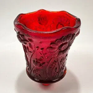 Pre-loved Homco Daisy Floral Red Glass Peg Votive Candle Holder Home Interiors Glows