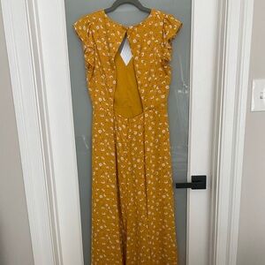 Lulus Fresh Pucked Mustard Yellow Floral Print Backless Maxi Dress