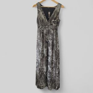 Anthropologie Chaudry Womens Maxi Dress Size Small Snake Print Sleeveless Lined
