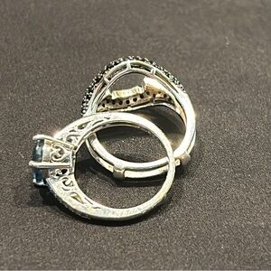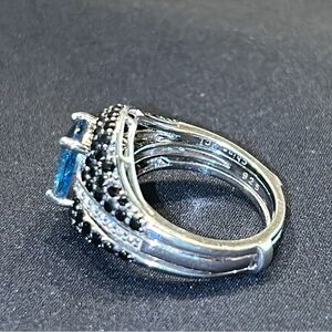 Beautiful Blue Topaz sterling silver ring with stunning Black Spinel ring guard. Worn once. Super sparkle and very comfortable. Ring can be easily worn with or without guard.