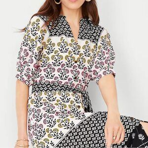 Ann Taylor Petite Border Floral Puff Sleeve Shirtdress - Size 0P