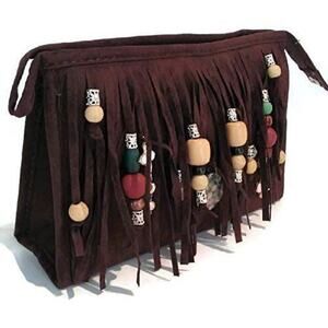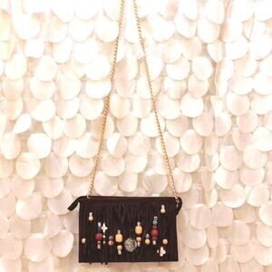 Fringed beaded faux suede zipper clutch with Gold Shoulder Strap Chain to wear as a CROSSBODY purse